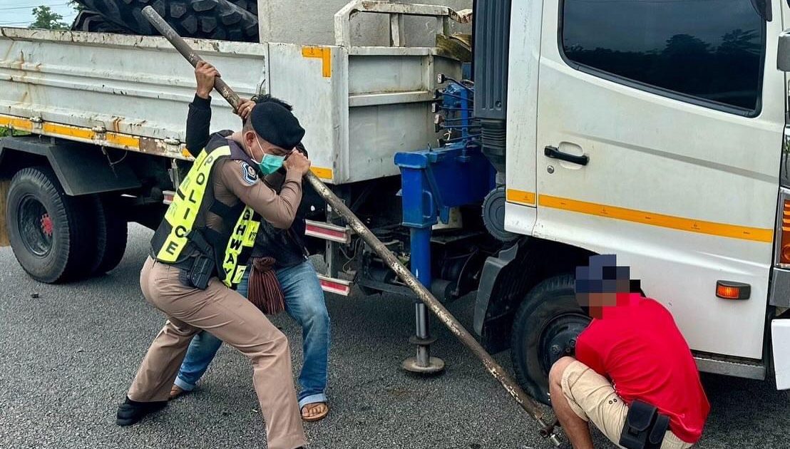 รถวิทยุ 7514 ว.4 ช่วยเหลือรถบรรทุก ว.18 “ยางรั่ว”